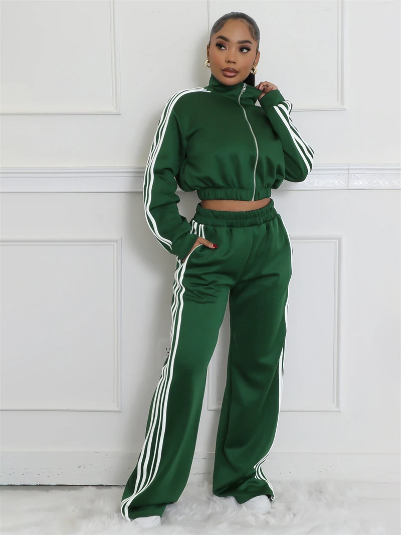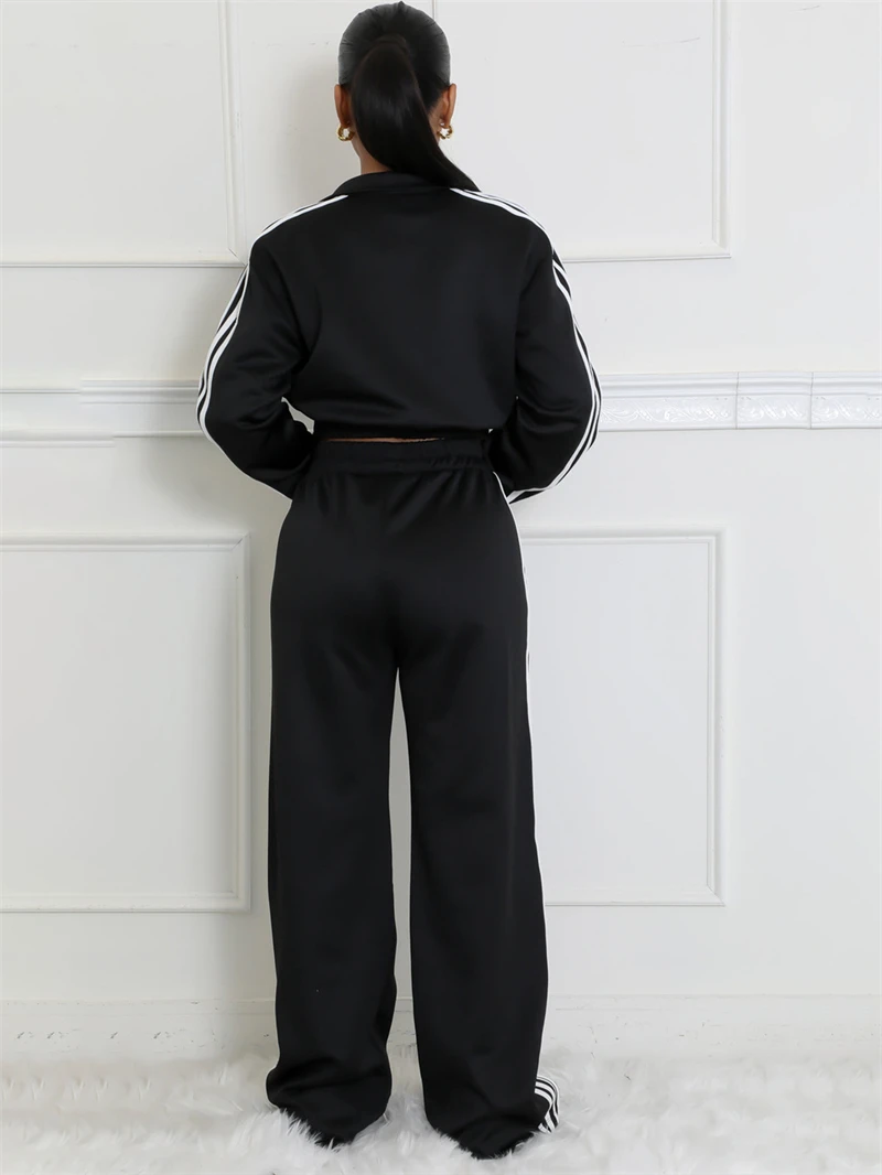Streetwear 2 Piece Sets Women Outfit Spring Clothes Women 2025 Side Striped Crop Top and Pant Sets Casual Sweatsuits Woman Sets